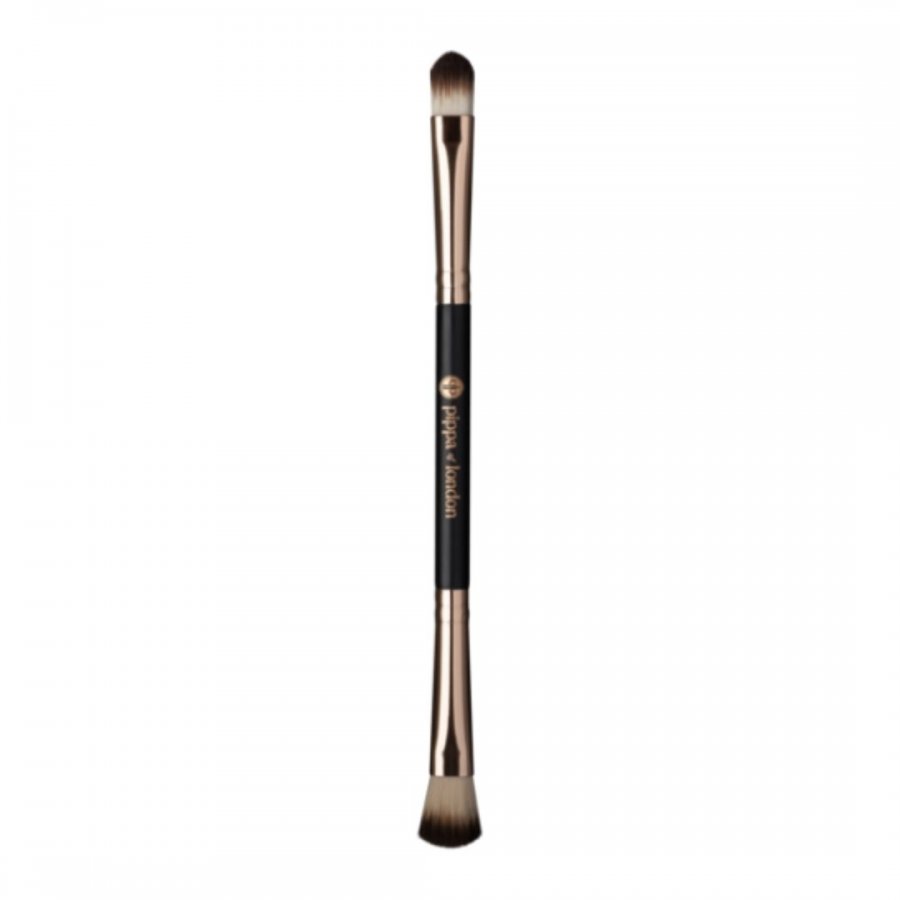 Pro aplikaci korektoru použijte plochou stranu štětce k jemnému vklepávání produktu pod oči. Rozetřete jej až k horní části tváře. Pak použijte měkčí stranu štětce a naneste pudr pro zafixování a rozmazání korektoru.