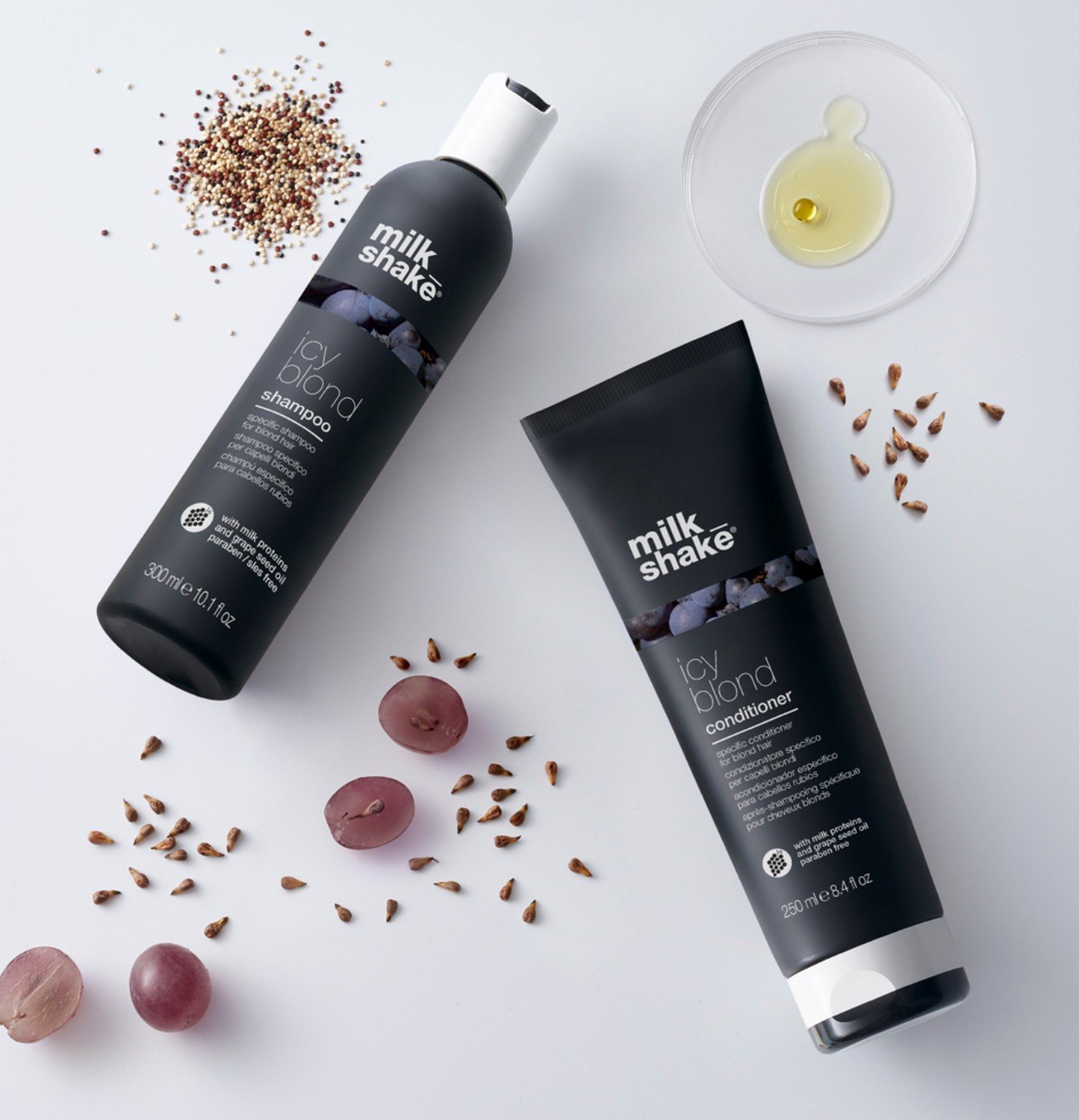 Toužíš po studené blond? Tak vyzkoušej ICY BLOND, který je obohacený o černý pigment! Odstraňuje nežádoucí žluté tóny a zároveň dodává světle šedý tón. Výsledkem je sofistikovaný vzhled stříbřité studené blond.