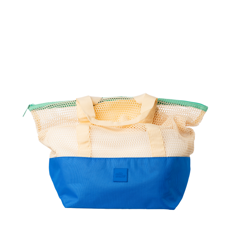 Sun&More plážová taška v designové kombinaci syté modré, vanilkové a jemné zelené je ideálním společníkem na pláž, bazén nebo víkendový výlet. Prostorná, lehká a vzdušná — perfektní na letní dny, kdy s sebou potřebujete vše, co vaše pokožka a vlasy milují. Vyladěná do barev celé řady Sun&More.